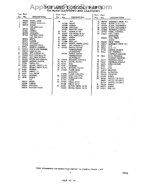 Parts for Whirlpool LAA5700W3: 05 - Section Parts