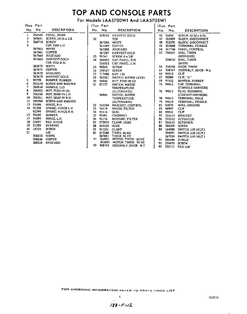 Parts for Whirlpool LAA5705W1: 05 - Section Parts
