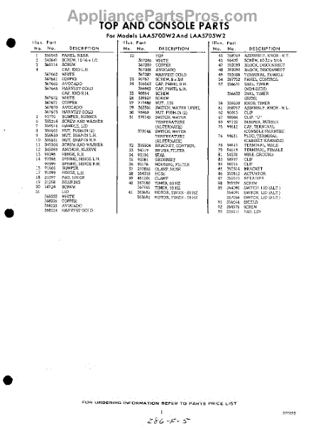 Parts for Whirlpool LAA5705W2: 05 - Section Parts