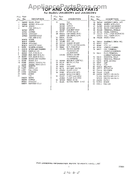 Parts for Whirlpool LAA5800W4: 05 - Section Parts