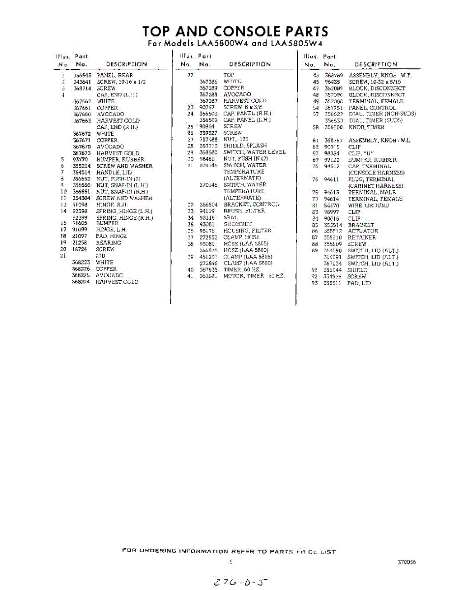 Parts for Whirlpool LAA5805W4: 05 - Section Parts