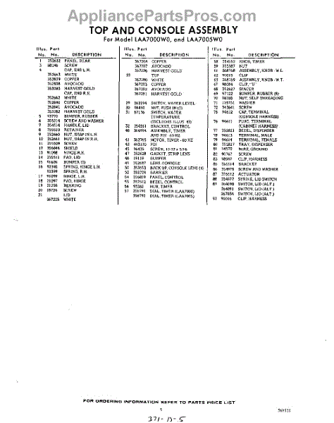 Parts for Whirlpool LAA7005W0: 05 - Section Parts