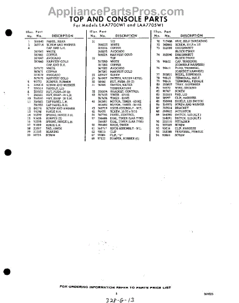 Parts for Whirlpool LAA7700W1: 05 - Section Parts