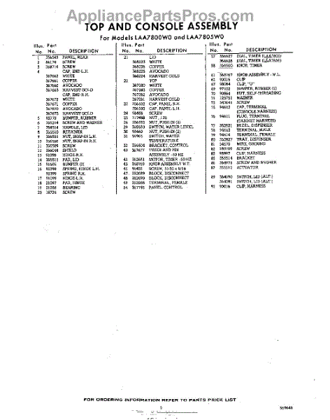 Parts for Whirlpool LAA7800W0: 05 - Section Parts
