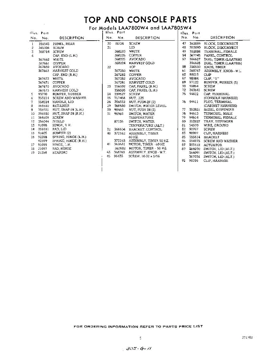 Parts for Whirlpool LAA7800W4: 05 - Section Parts