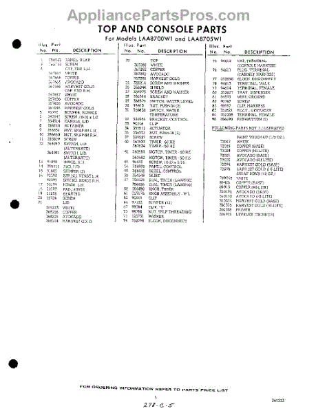 Parts for Whirlpool LAA7805W1: 05 - Section Parts