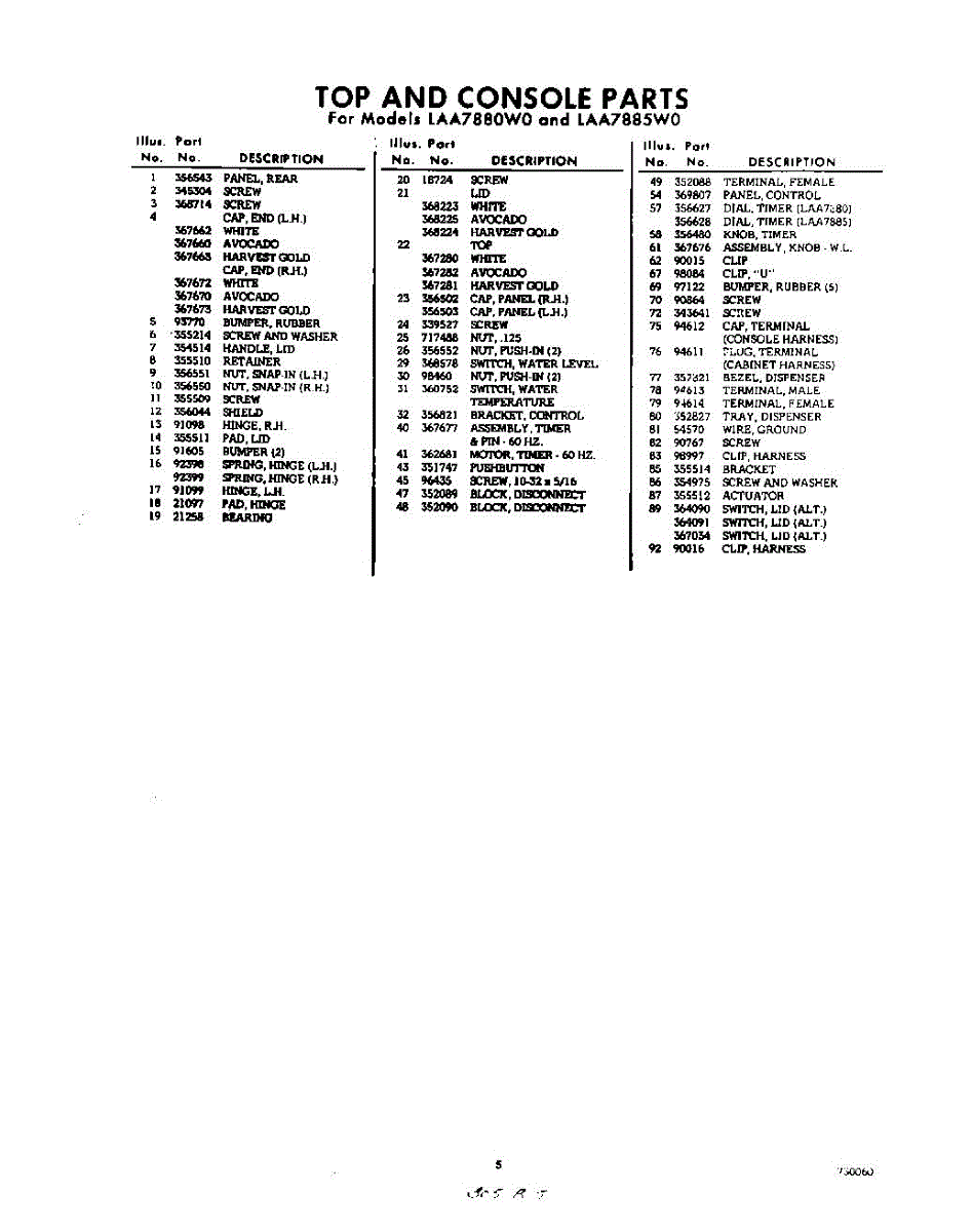 Parts for Whirlpool LAA7885W0: 05 - Section Parts