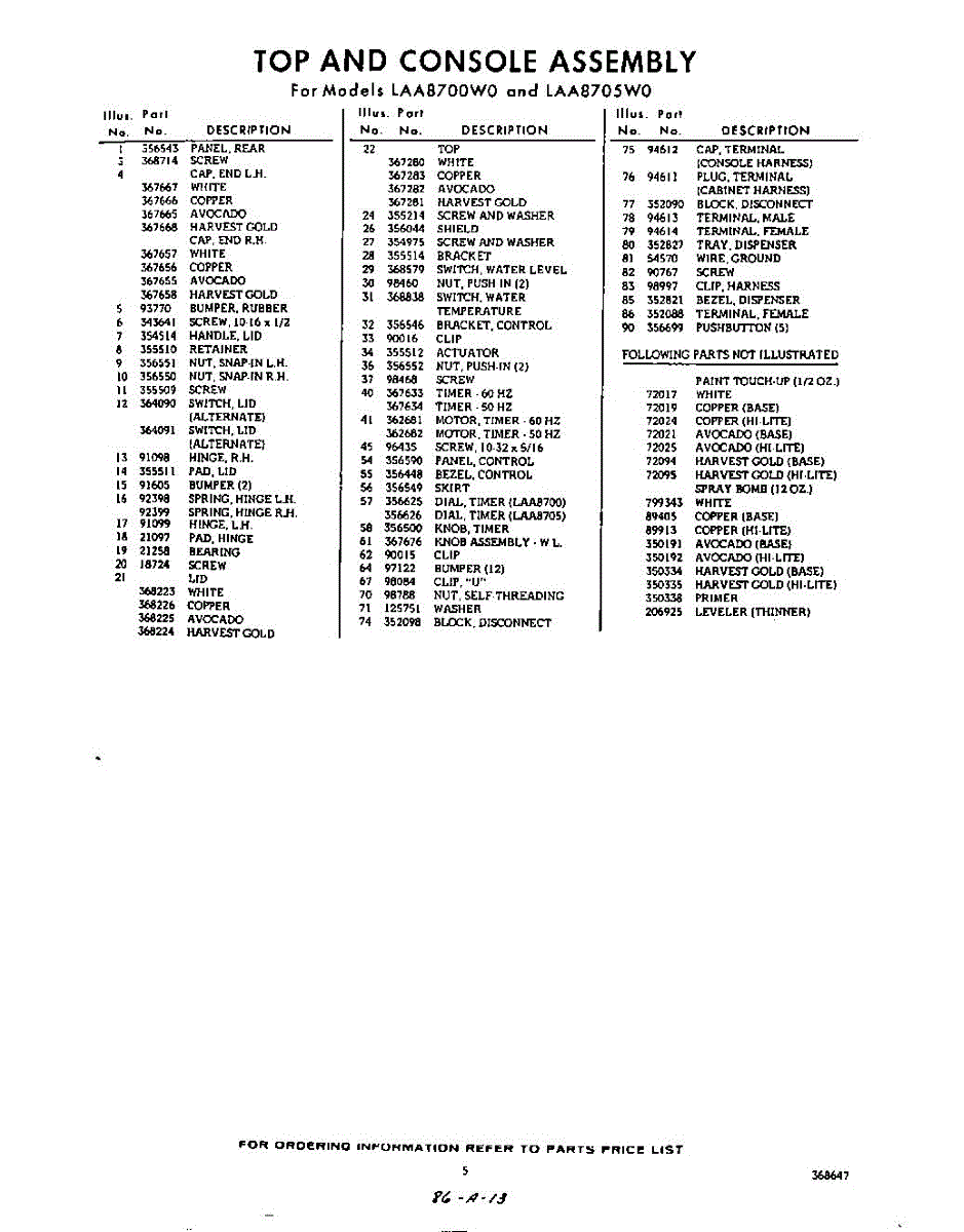 Parts for Whirlpool LAA8705W0: 05 - Section Parts