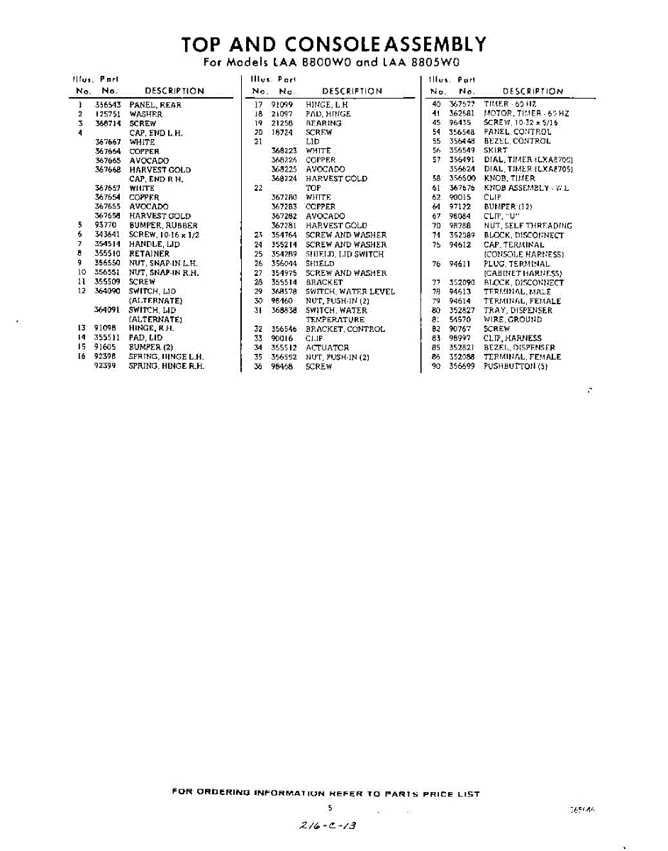 Parts for Whirlpool LAA8800W0: 05 - Section Parts