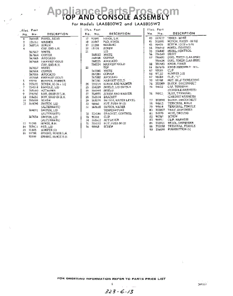 Parts for Whirlpool LAA8800W2: 05 - Section Parts