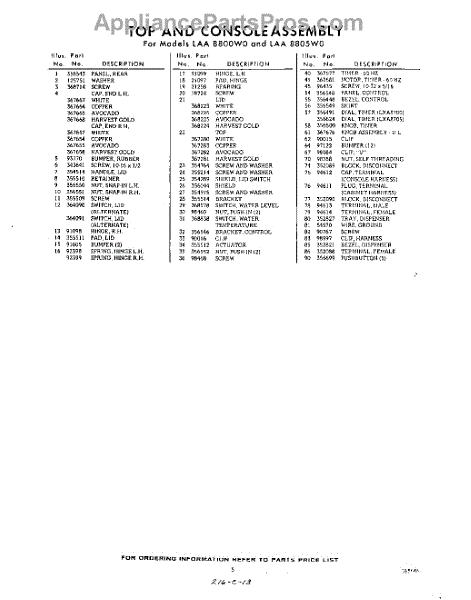 Parts for Whirlpool LAA8805W0: 05 - Section Parts