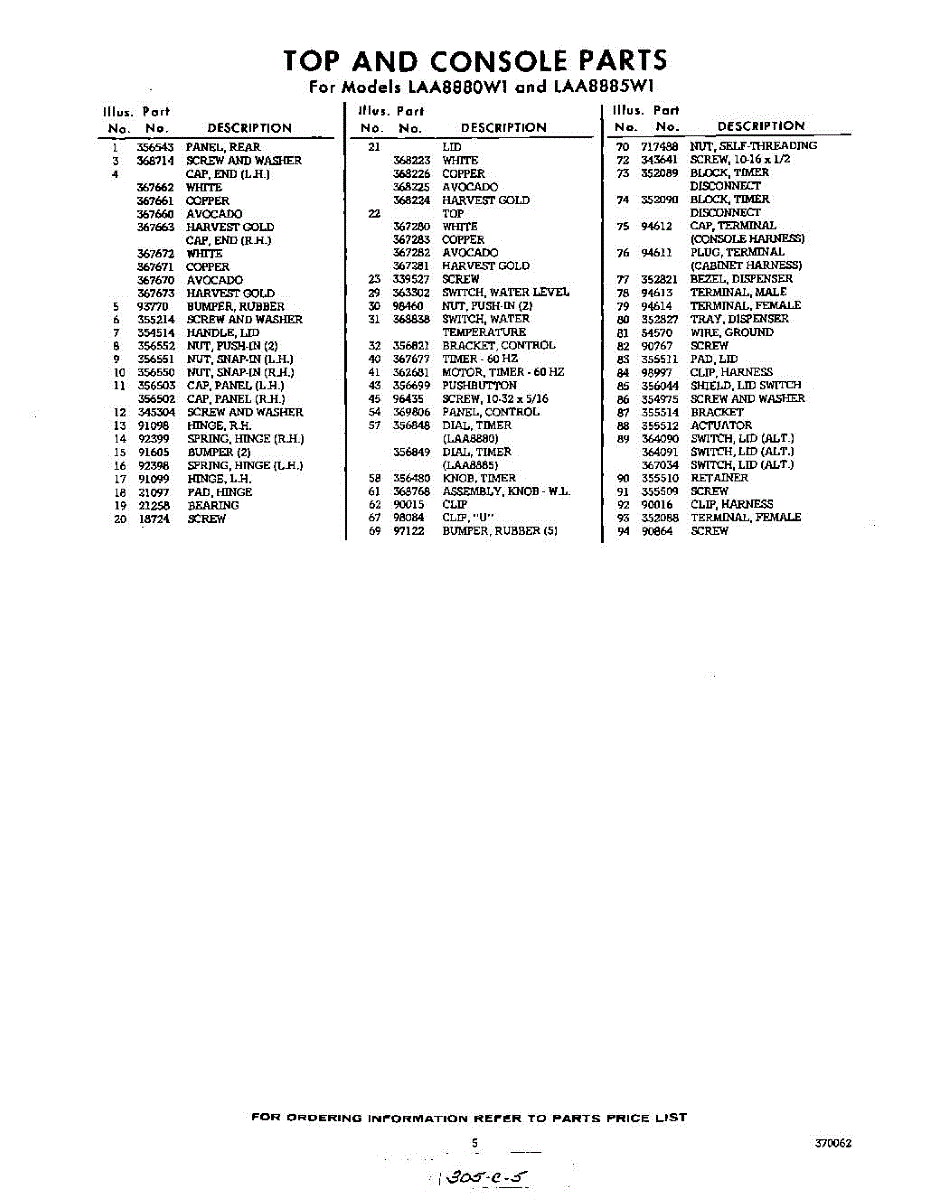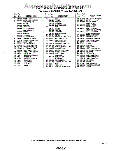 Parts for Whirlpool LAA8885W1: 05 - Section Parts