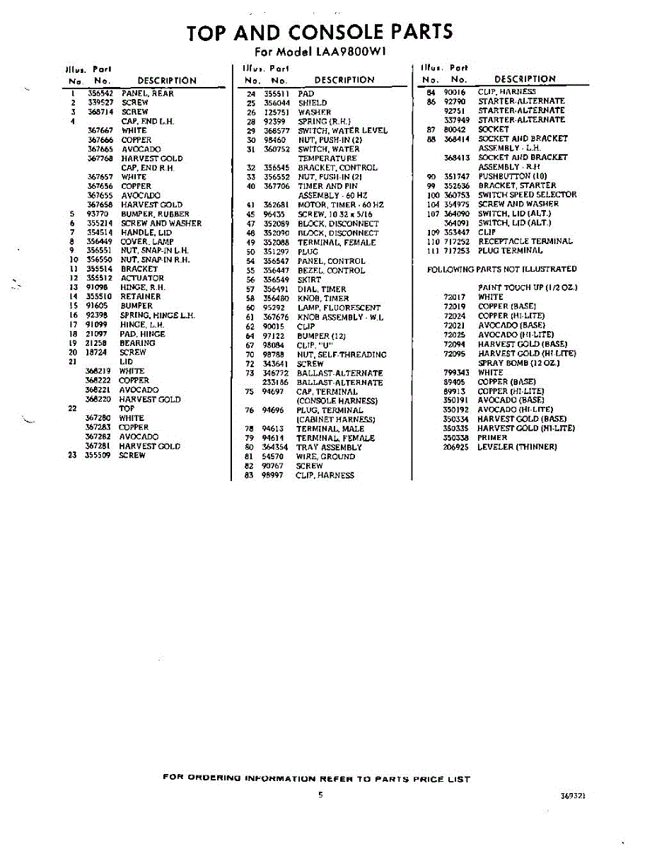 Parts for Whirlpool LAA9800W1: 05 - Section Parts