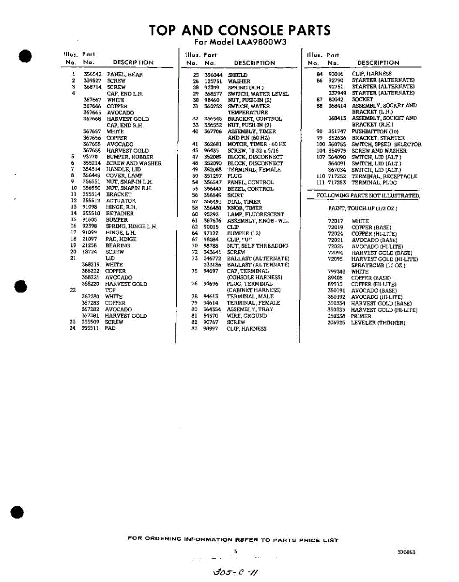 Parts for Whirlpool LAA9800W3: 05 - Section Parts