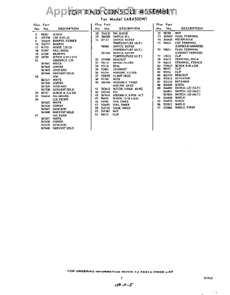 Parts for Whirlpool LAB4500W1: 05 - Section Parts