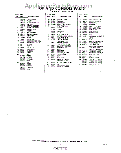 Parts for Whirlpool LAB5300W1: 03 - Section Parts