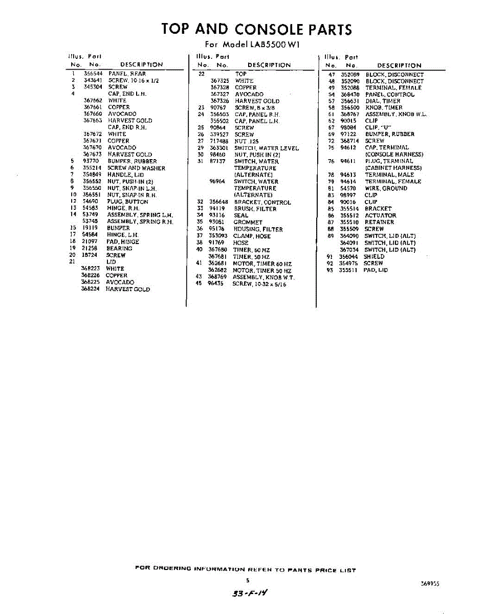 Parts for Whirlpool LAB5500W1: 05 - Section Parts