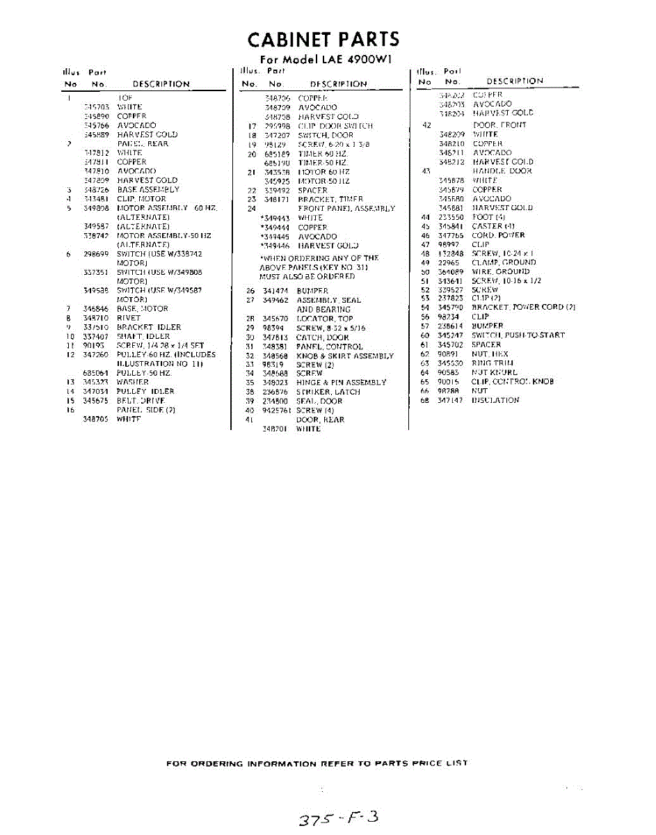 Parts for Whirlpool LAE4900W1: 03 - Section Parts