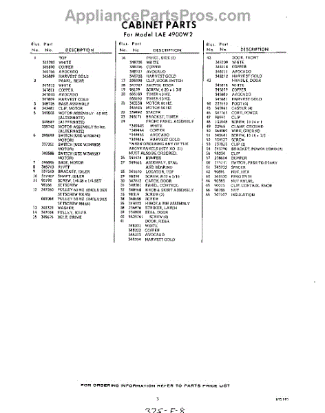 Parts for Whirlpool LAE4900W2: 03 - Section Parts