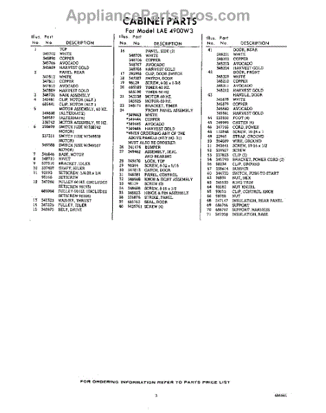 Parts for Whirlpool LAE4900W3: 03 - Section Parts