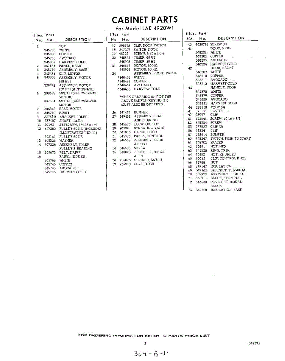 Parts for Whirlpool LAE4920W1: 03 - Section Parts