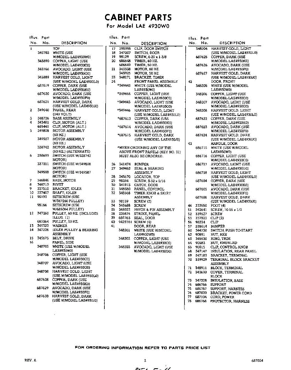 Parts for LAE4930W0