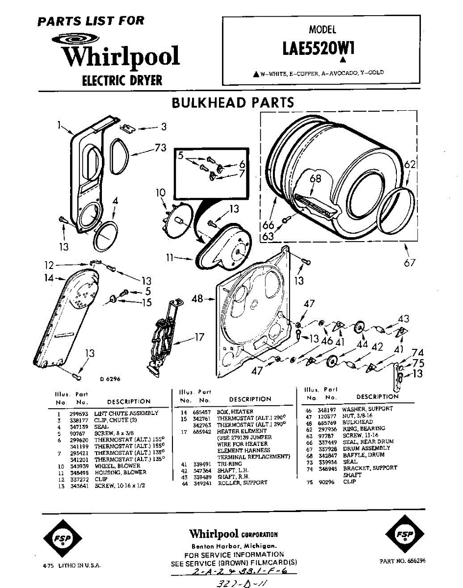 Parts for Whirlpool LAE5520W1: 01 - Section Parts