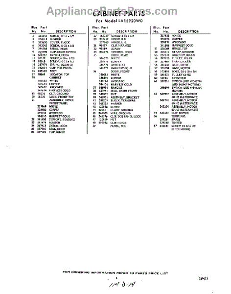 Parts for Whirlpool LAE5920W0: 05 - Section Parts