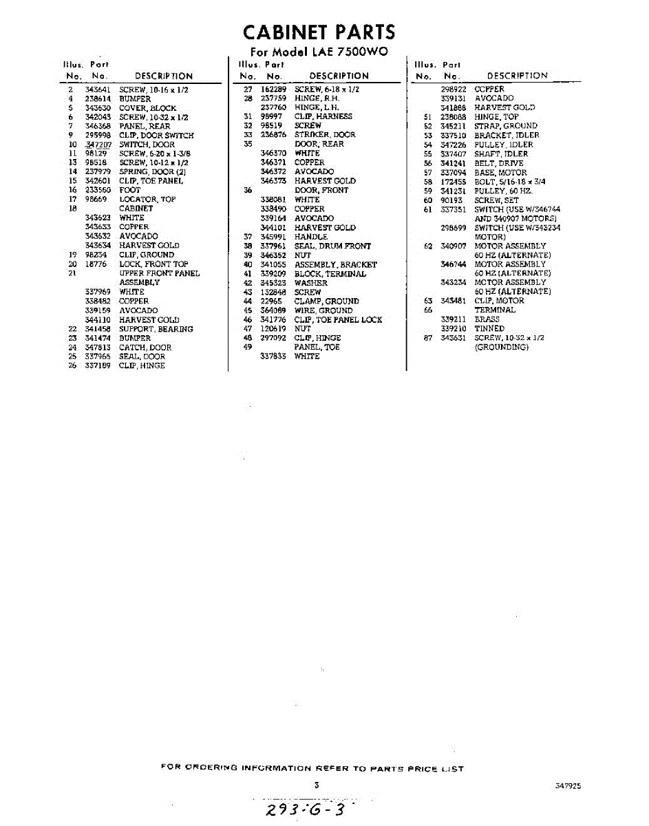 Parts for Whirlpool LAE7500W0: 03 - Section Parts