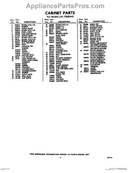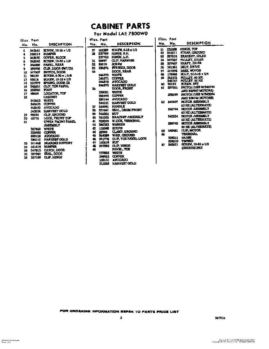 Parts for Whirlpool LAE7800W0: 03 - Section Parts