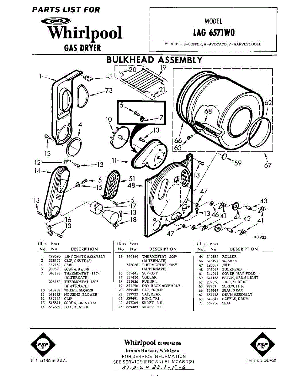 Parts for Whirlpool LAG6571W0: 01 - Section Parts
