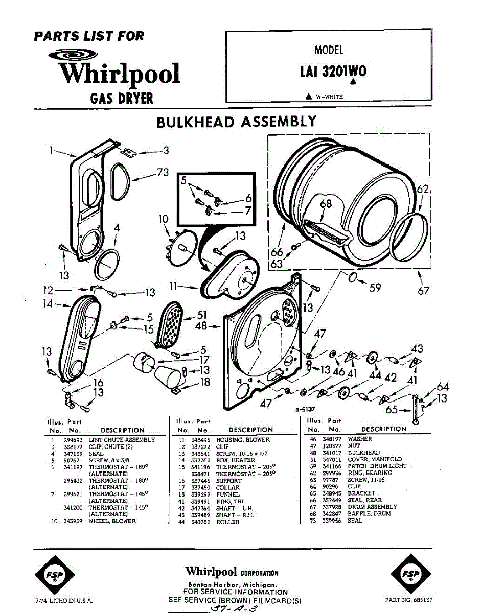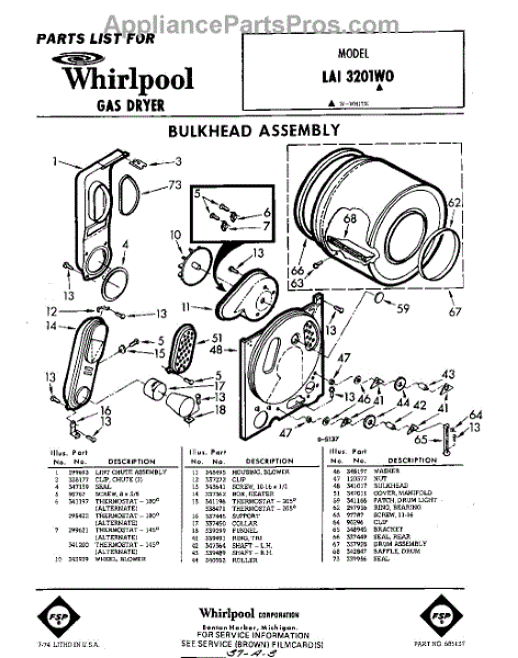 Parts for Whirlpool LAI3201W0: 01 - Section Parts