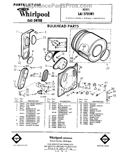 Parts for Whirlpool LAI5701W1: 01 - Section Parts
