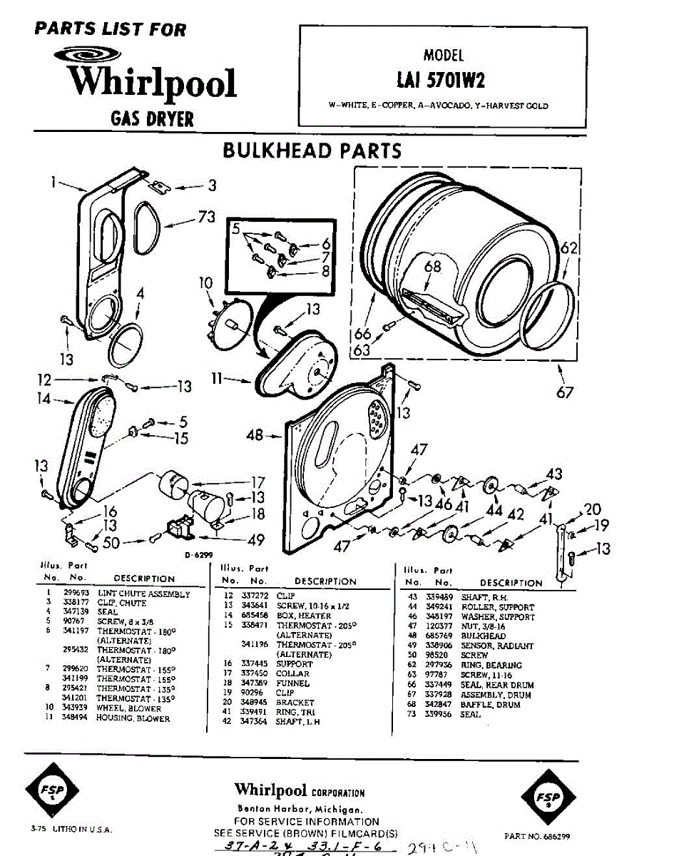 Parts for Whirlpool LAI5701W2: 01 - Section Parts