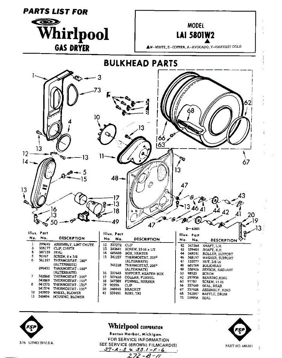 Parts for Whirlpool LAI5801W2: 01 - Section Parts