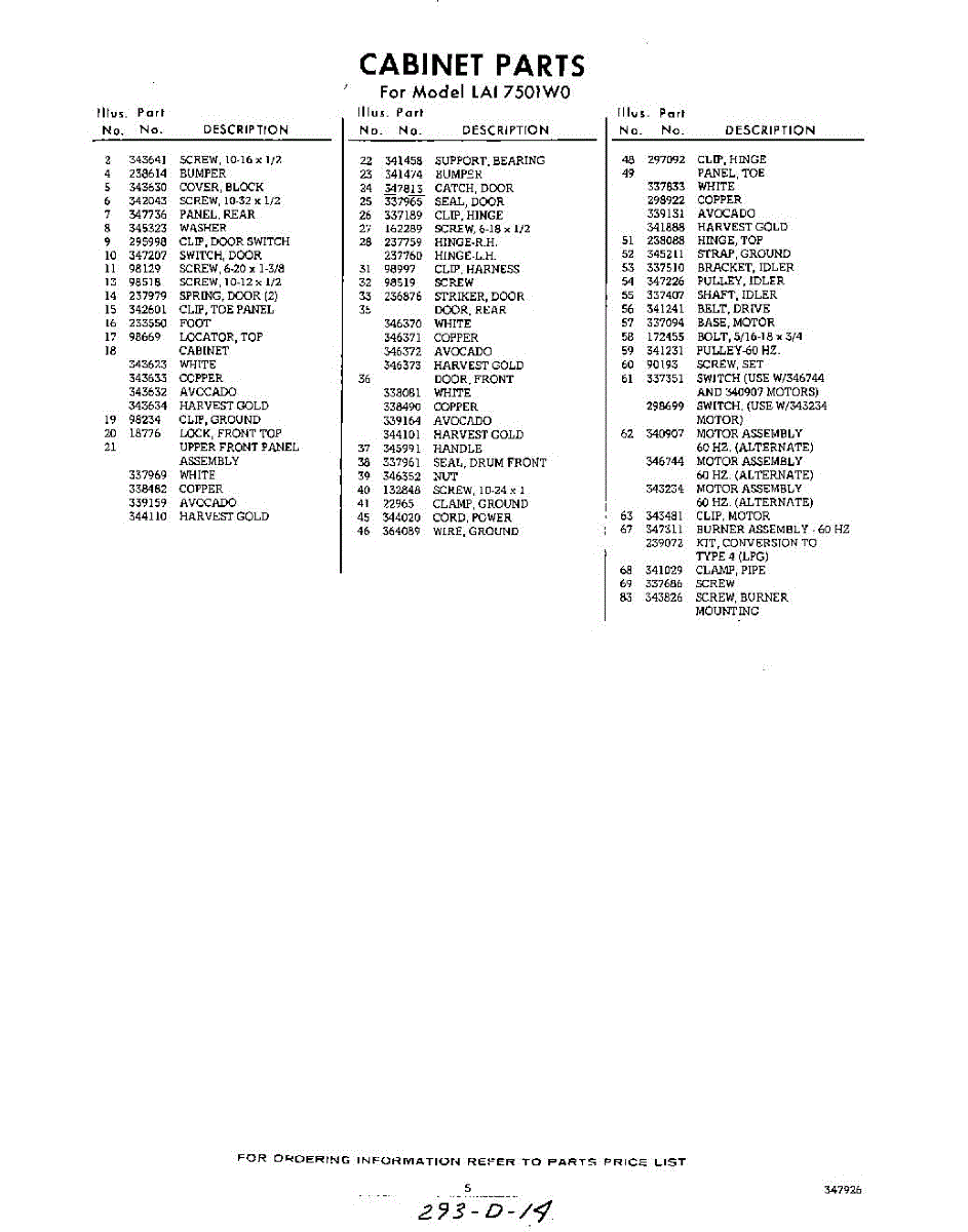 Parts for Whirlpool LAI7501W0: 05 - Section Parts