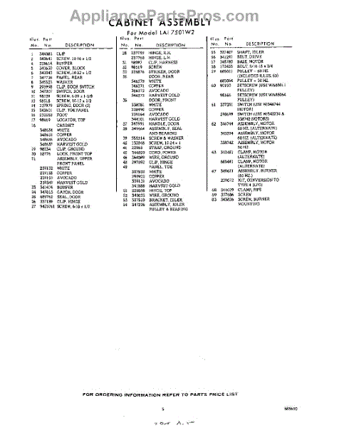 Parts for Whirlpool LAI7501W2: 05 - Section Parts