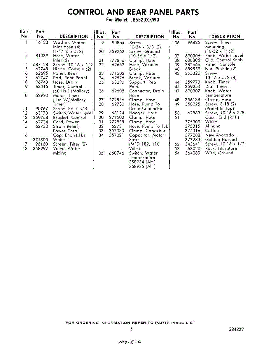 Parts for Whirlpool LB5520XKW0: 05 - Section Parts
