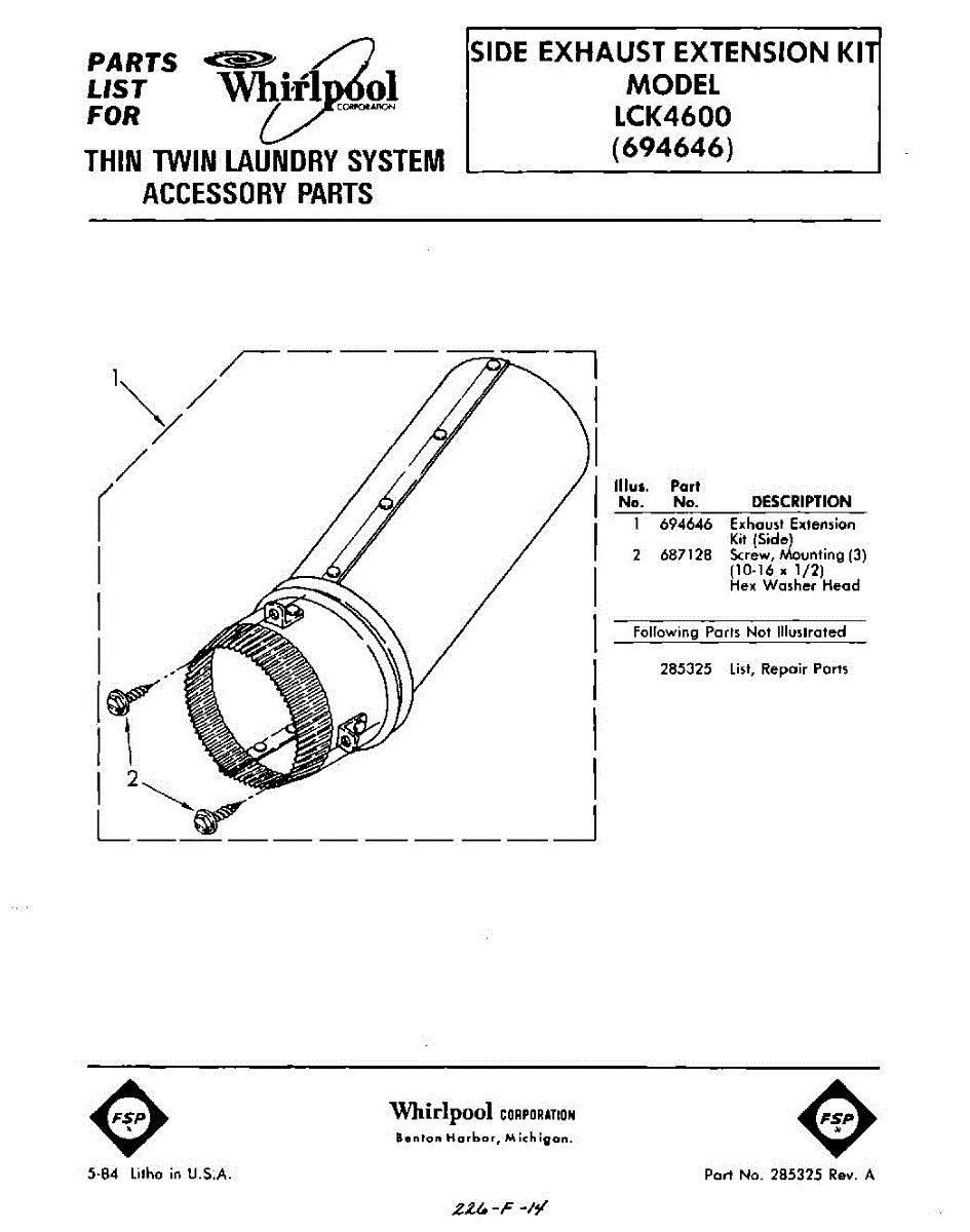 Parts for Whirlpool LCK4600: 01 - Section Parts
