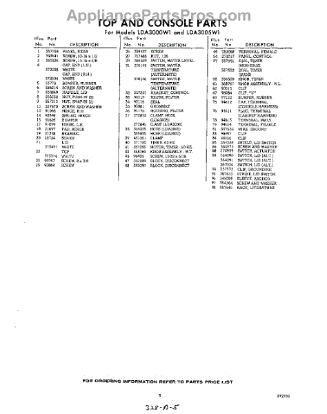 Parts for Whirlpool LDA3000W1: 05 - Section Parts