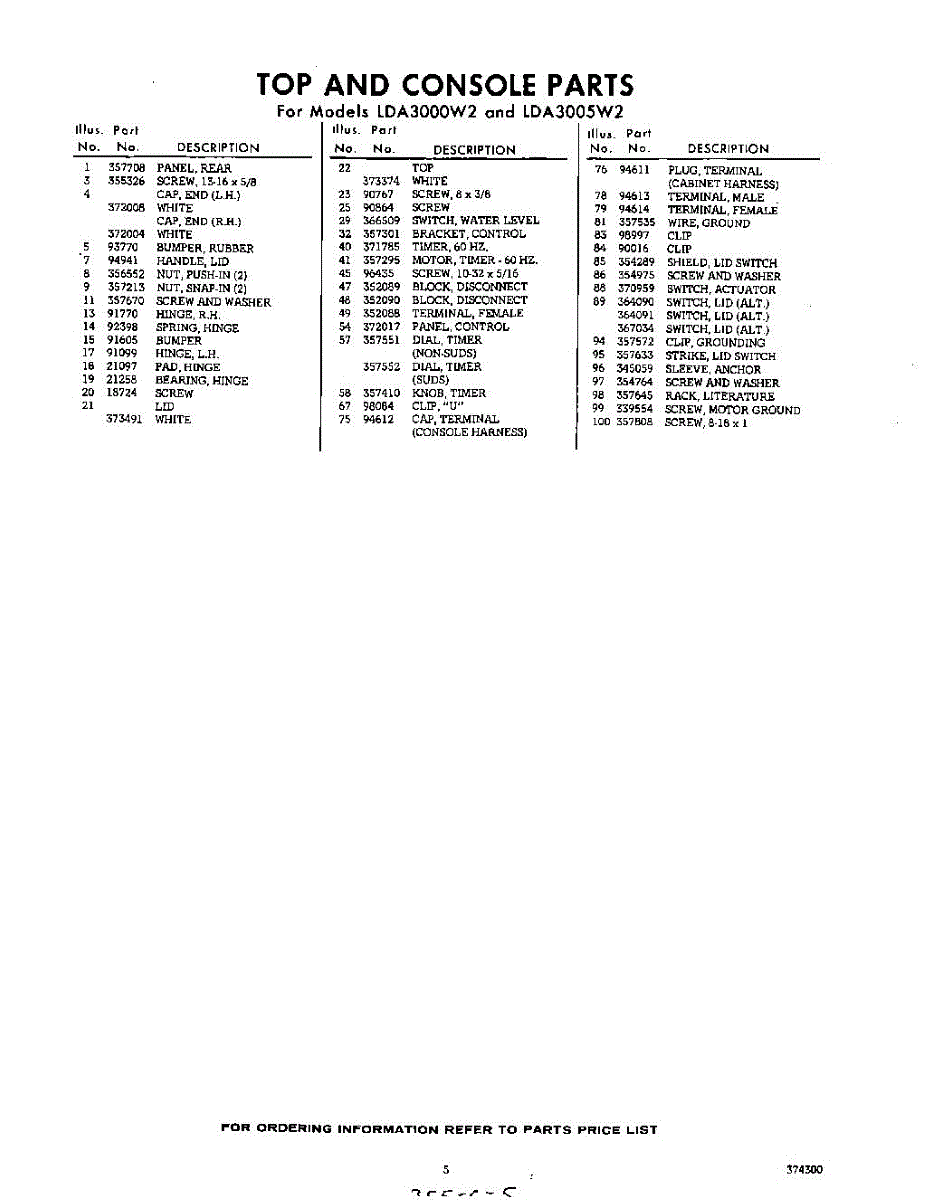Parts for Whirlpool LDA3000W2: 05 - Section Parts