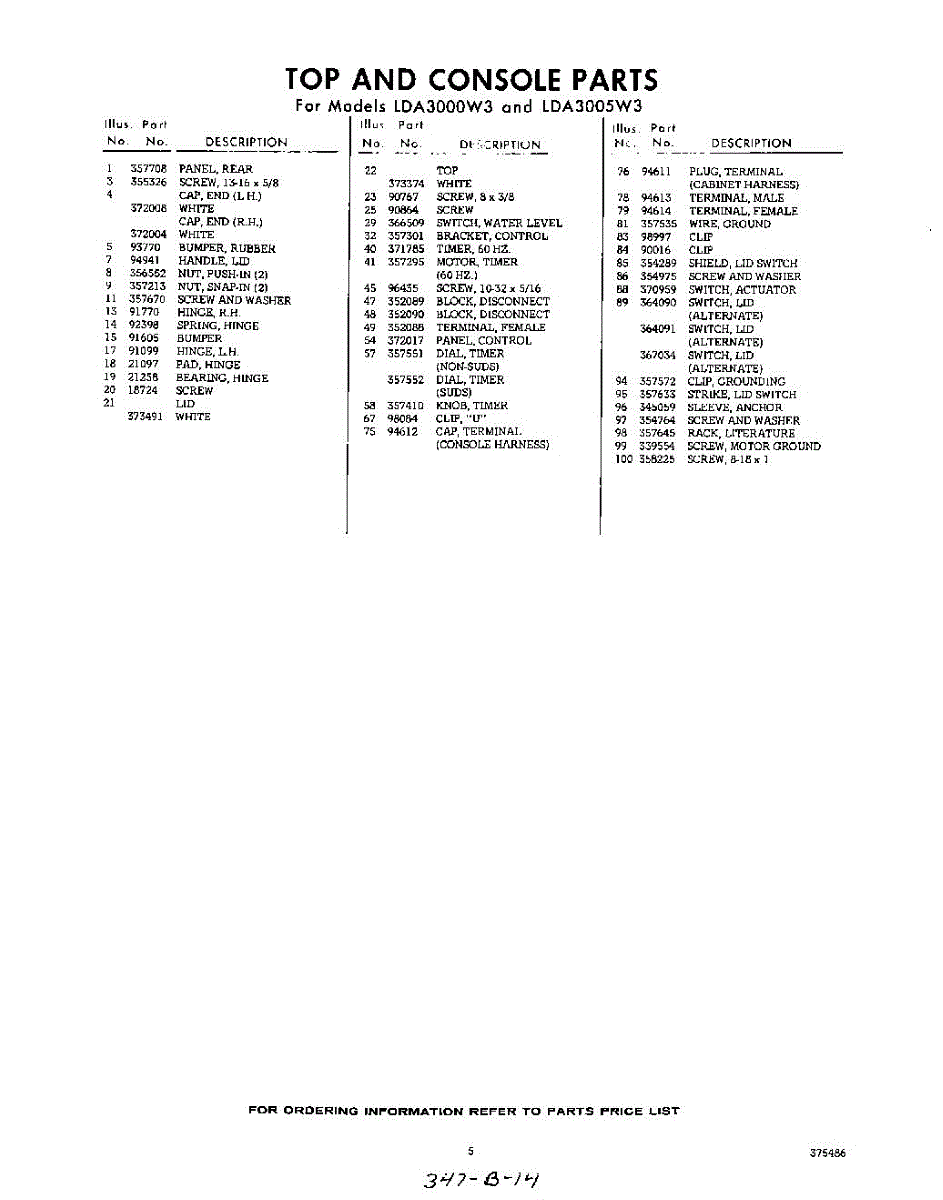 Parts for Whirlpool LDA3005W3: 05 - Section Parts
