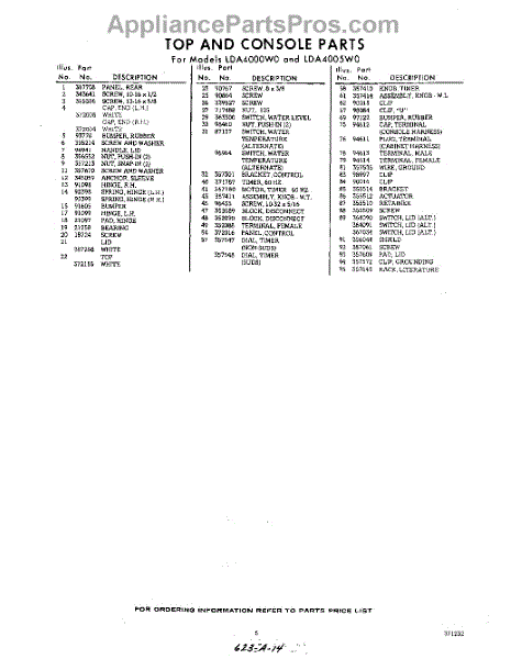 Parts for Whirlpool LDA4000W0: 05 - Section Parts