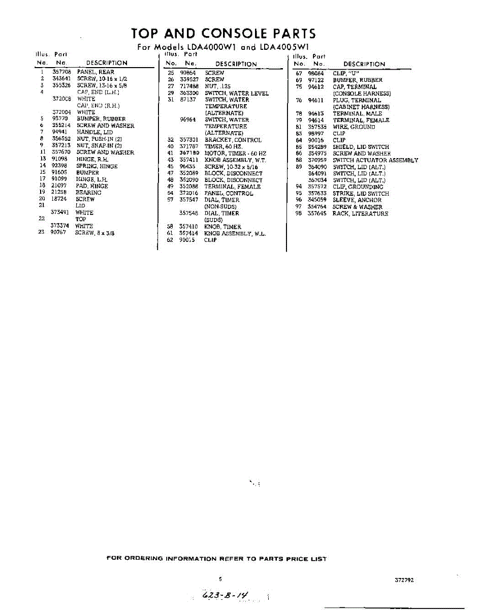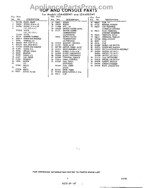 Parts for Whirlpool LDA4005W1: 05 - Section Parts