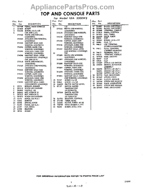 Parts for Whirlpool LDA5300W2: 05 - Section Parts