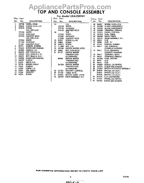Parts for Whirlpool LDA5380W1: 05 - Section Parts