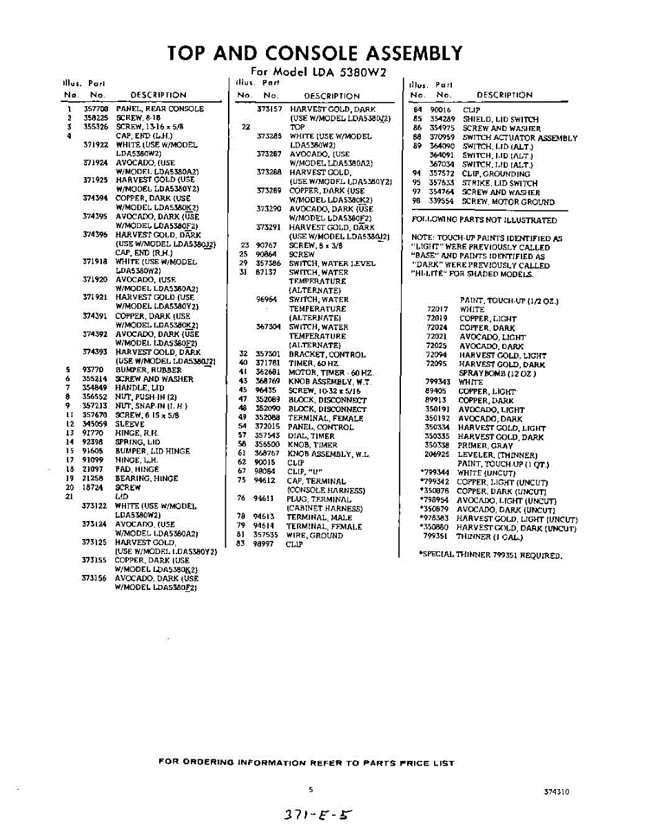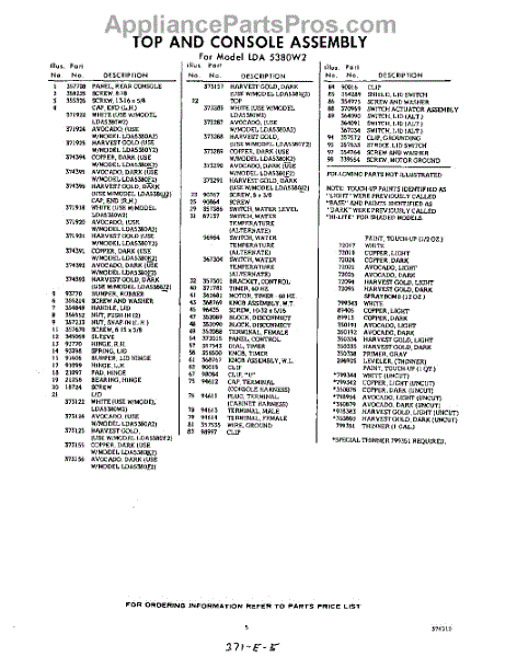 Parts for Whirlpool LDA5380W2: 05 - Section Parts