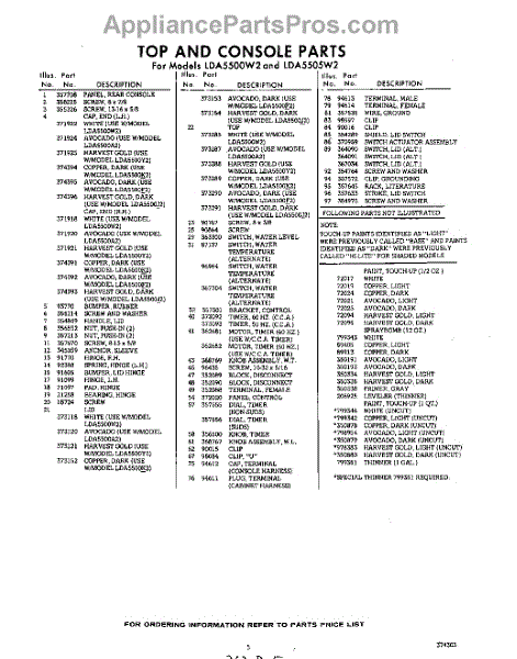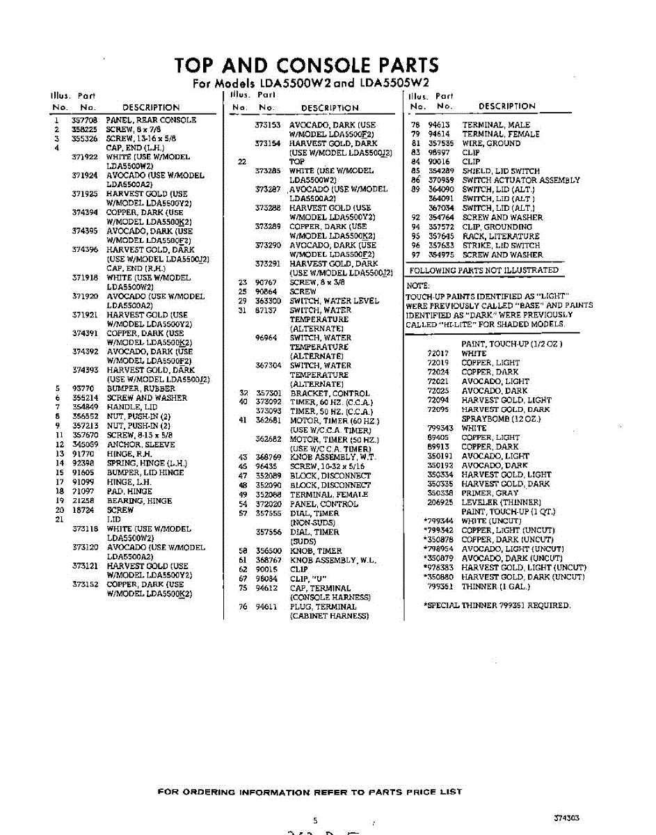 Parts for Whirlpool LDA5500W2: 05 - Section Parts