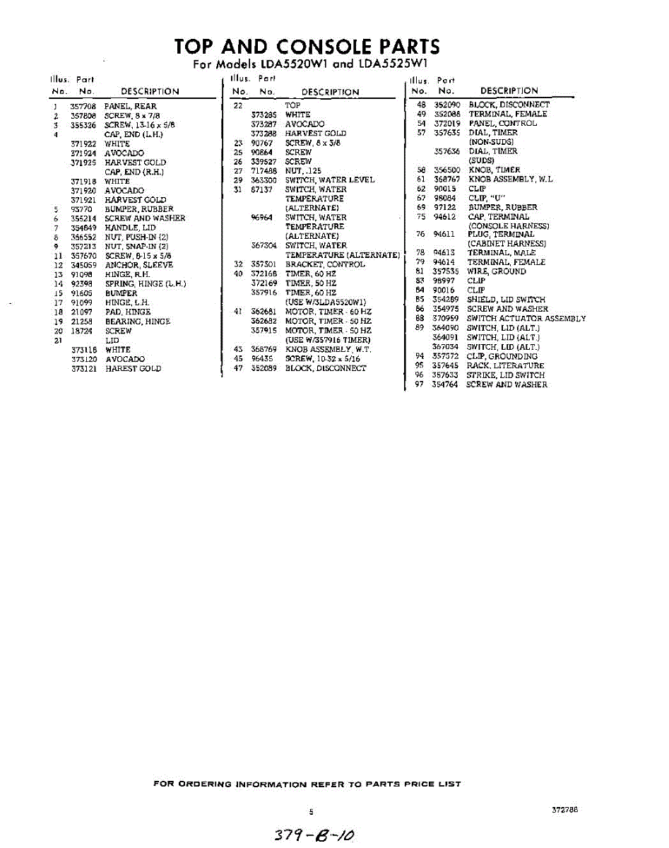 Parts for Whirlpool LDA5525W1: 05 - Section Parts