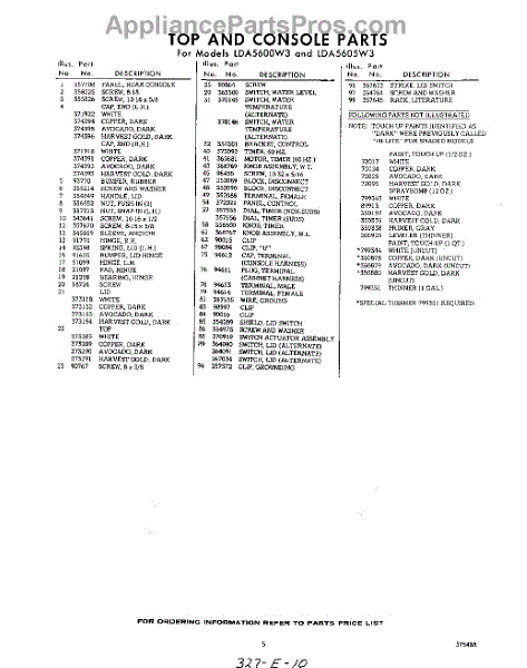 Parts for Whirlpool LDA5605W3: 05 - Section Parts